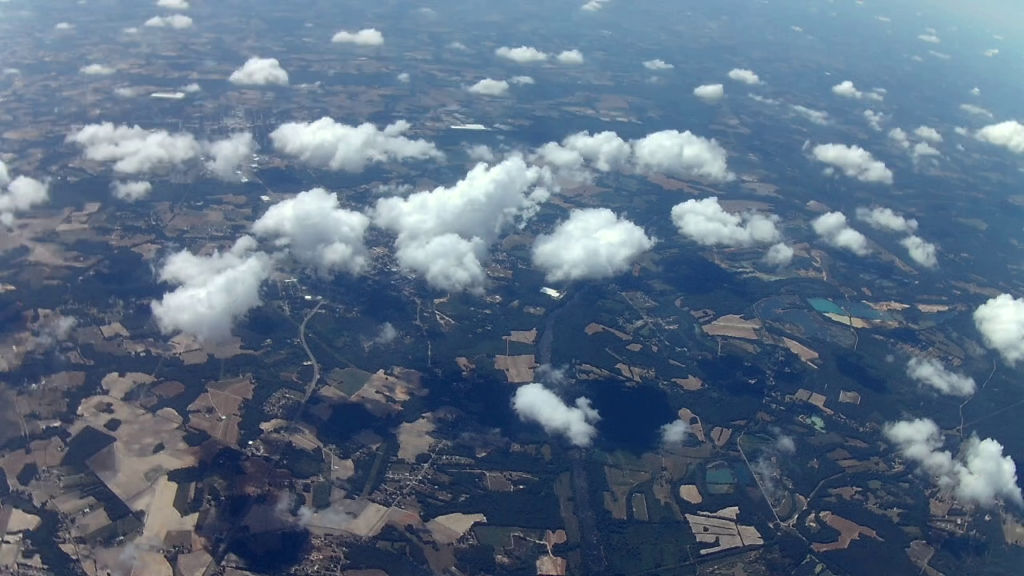 Descending towards Lillington NC –The Cape Fear river below the clouds.