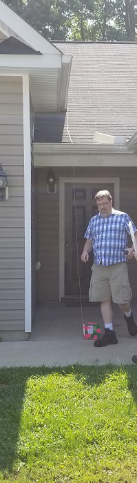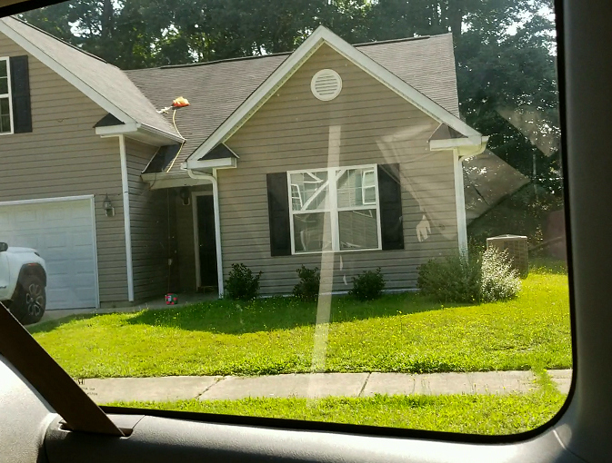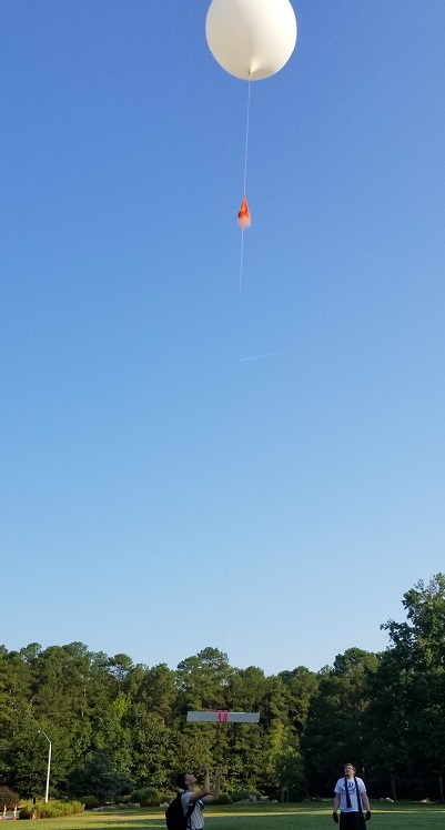 The chase team followed below the payload. Towards the end, it was feared that the payload would land on I-40 south of Raleigh. Thankfully it floated over the highway and landed in a nearby housing development. The payload landed at the front door of a home and the chute landed on the roof. No one was home, so we gathered up the payload/chute and scooted.
