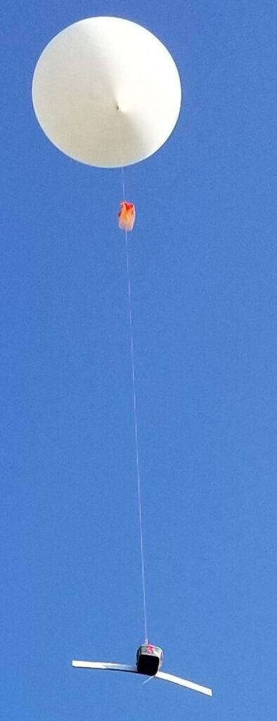 The payload was very similar to NSL-93. The addition of a foam wing has been found to be very affective is slowing down the spin of the payload (part airfoil, part angular momentum). Aboard the payload was an AP510 and T-beam tracker, a Mobius mini camera, and a GMC recording geiger counter. This launched at 0754ET under a 600g cell of H2.